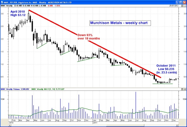 Murchison Metals weekly candlestick chart - October 2011 to July